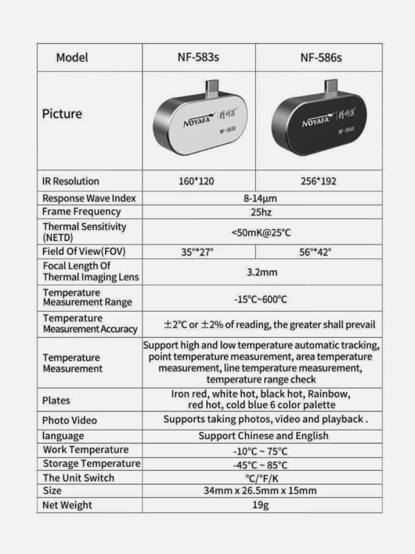 Тепловизор для смартфона NOYAFA NF-583S — это уникальное устройство, которое поможет вам быстро и точно измерять температуру различных объектов.