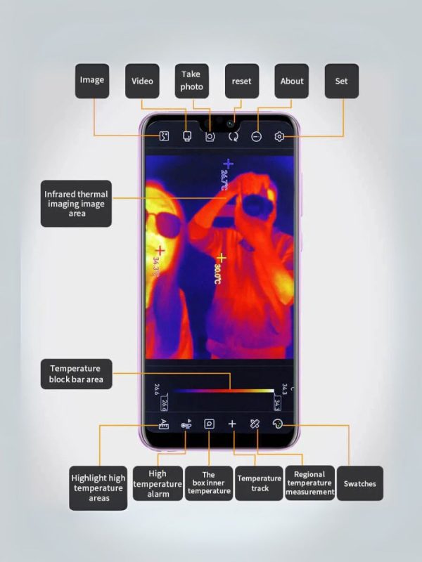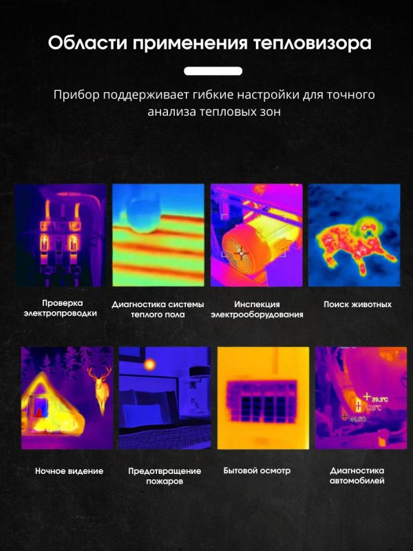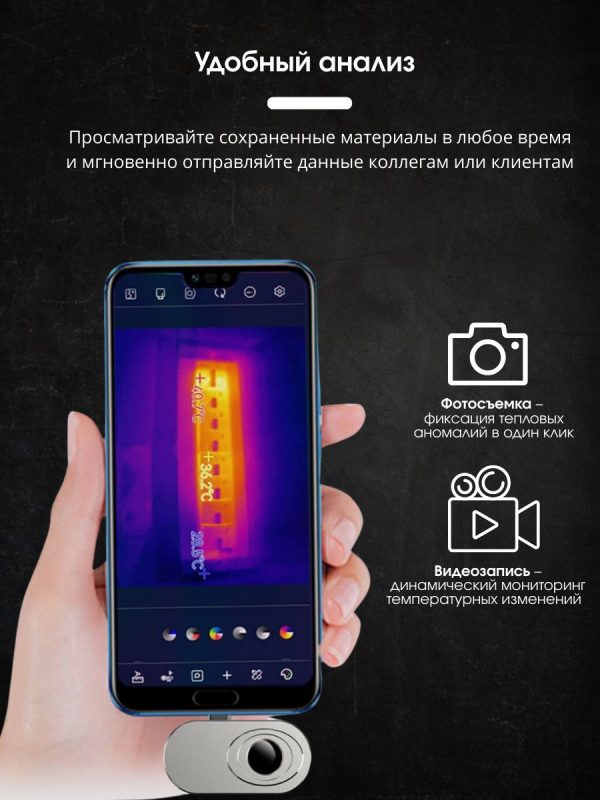 - Портативный дизайн – компактный тепловизор помещается в карман и готов к использованию в любое время и в любом месте.