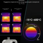 - Широкий диапазон температур – от –20 °C до 600 °C с точностью ±2%. Поддерживается переключение единиц измерения: °C / °F / K.