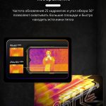 - Плавное изображение – частота 25 кадров в секунду и угол обзора 35°, что позволяет охватывать большие площади, быстро находить источники тепла и фиксировать важные моменты.