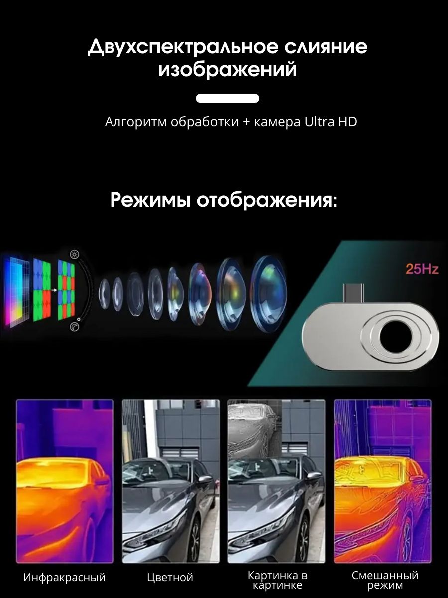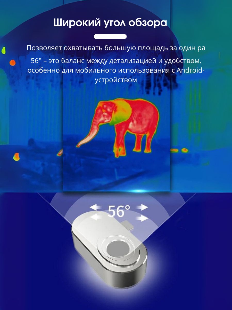 - Мощная тепловизионная камера для смартфона – подключается к вашему телефону или планшету через разъём Type-C и превращает устройство на Android в полноценный тепловизор. Работает с низким энергопотреблением и не требует отдельной подзарядки.