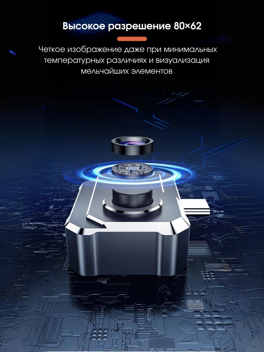 - Мощная тепловизионная камера для смартфона – подключается к вашему телефону или планшету через разъём Type-C и превращает устройство на Android в полноценный тепловизор. Работает с низким энергопотреблением и не требует отдельной подзарядки.